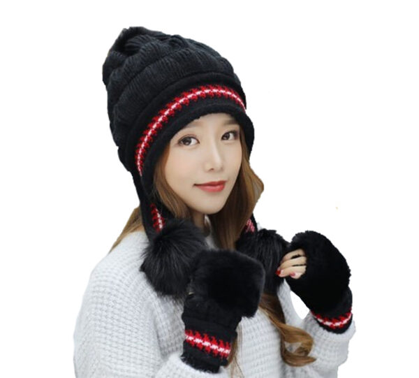 Alexvyan Cashmere Wool Black Winter Women Gloves and Cap -20℉ Snow & Windproof Soft Warm 1 Set Snow Proof Cap (Inside Fur) Woolen Beanie Cap with Gloves for Women Girl
